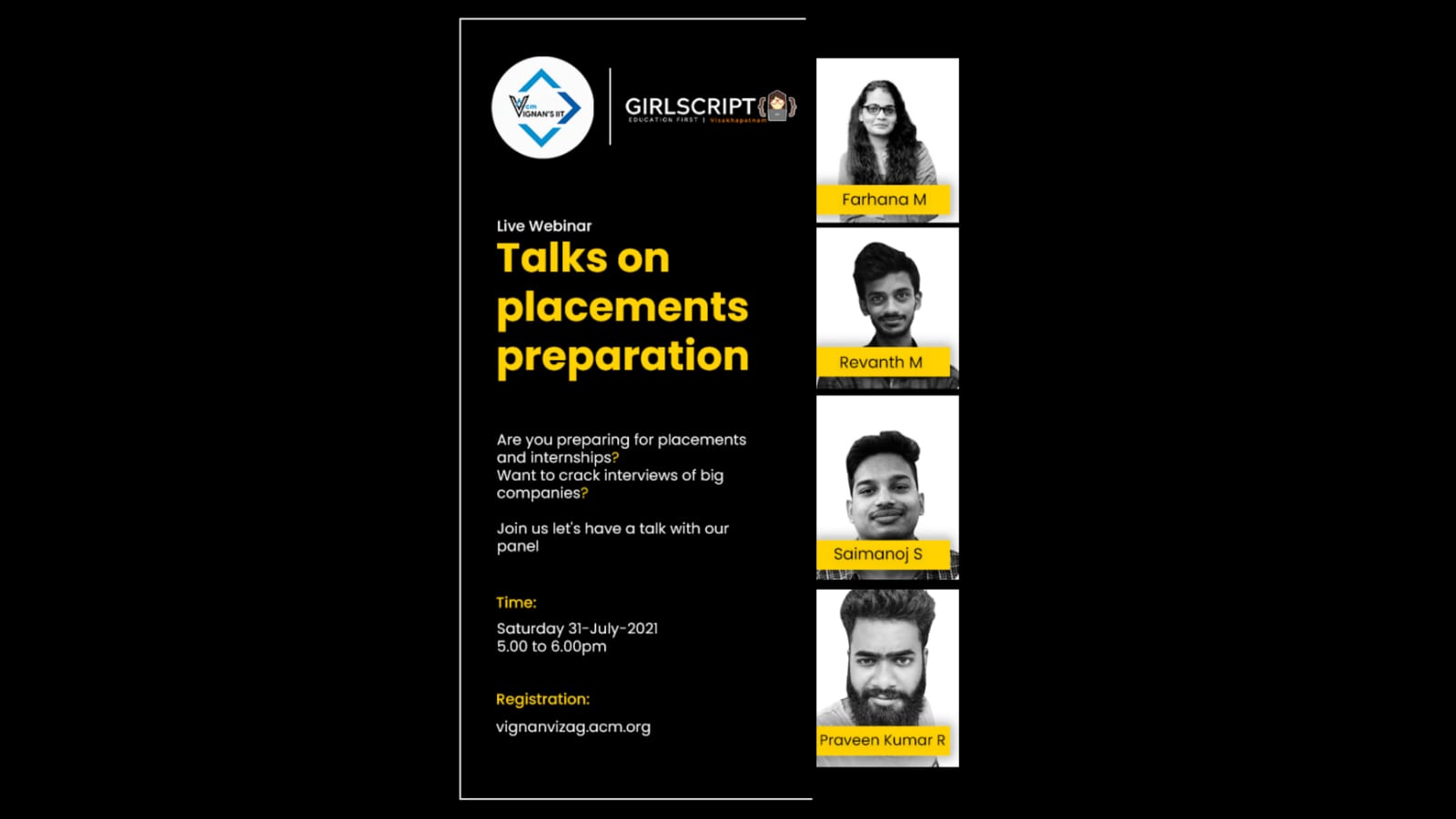 So it is very important for the students to understand the A and Z of the placements, which is why Vignan’s IIT ACM has come up with this amazing virtual session in collaboration with GirlScript where in the most experienced