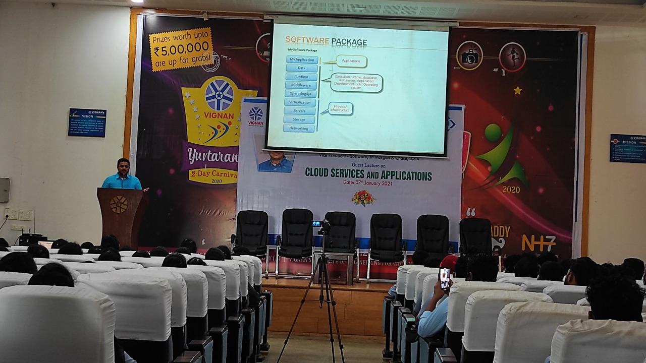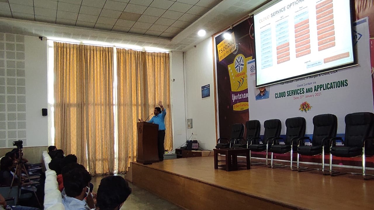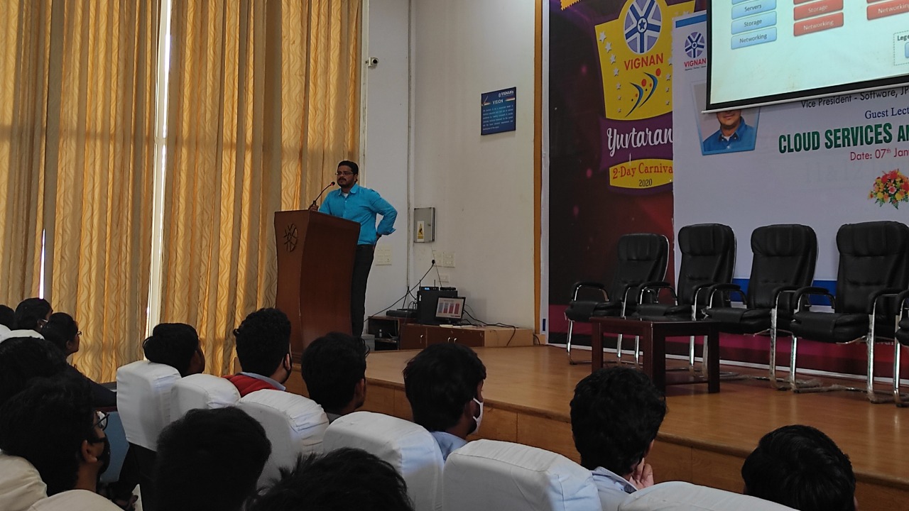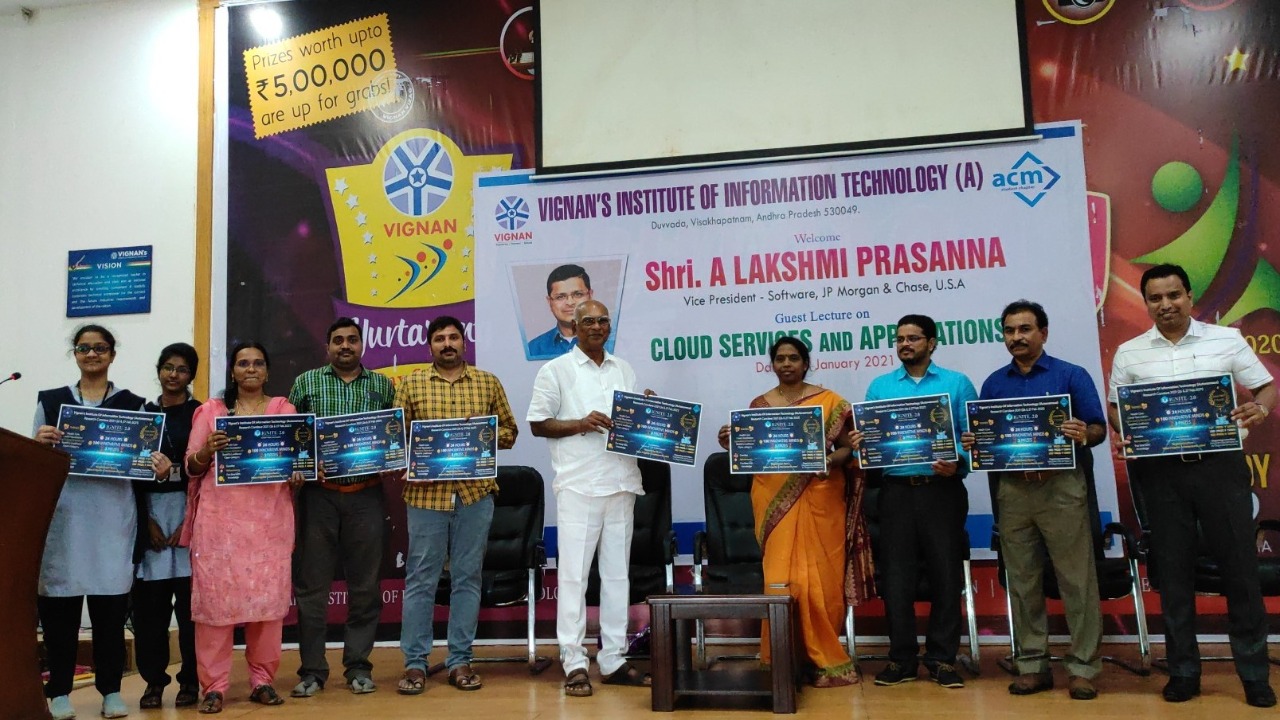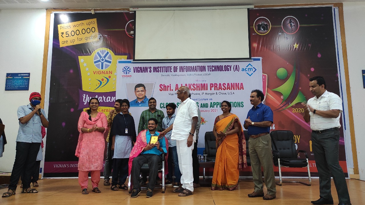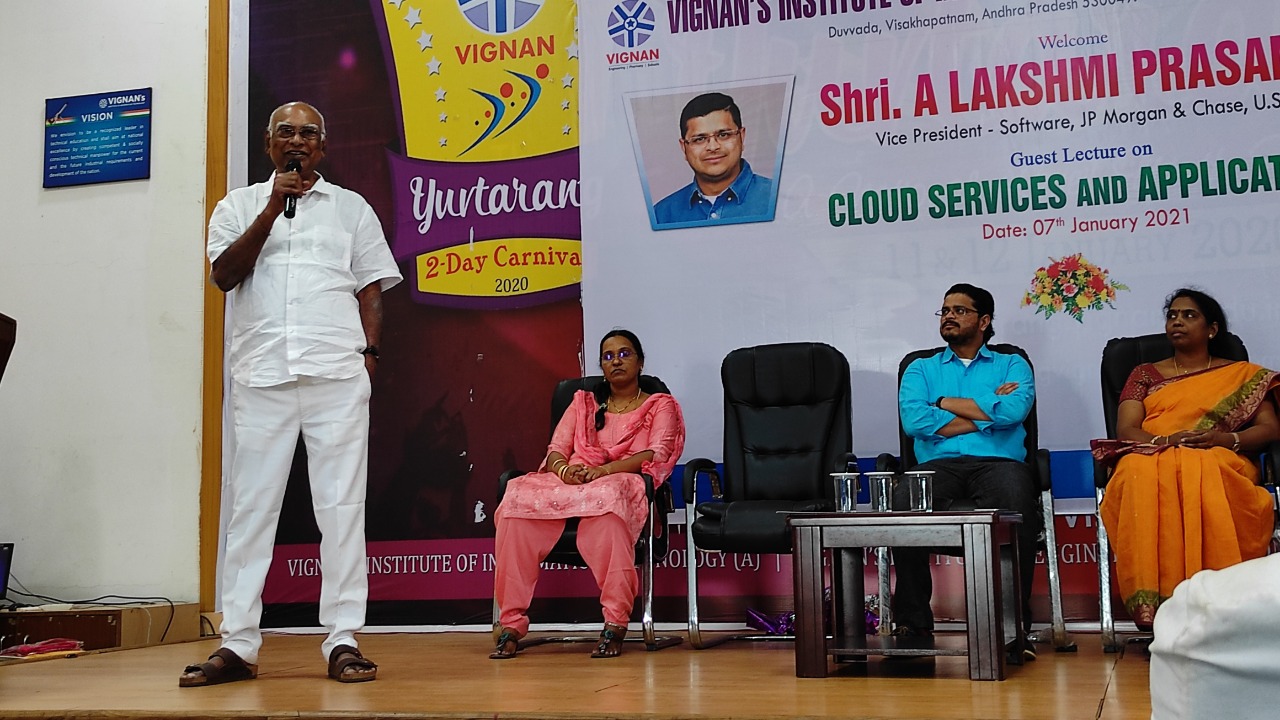 As a part of the ACM student chapter Vignan's IIT, We organized an event on Cloud Support, The key speaker for this event is LAKSHMI PRASANNA AKKENA who is a highly expert IT professional with more than 15 years of experience in Cloud Technology and E-Business Suite Applications. He presented the required information on Cloud Technologies with in-side information on the leading companies and their relational dependencies along with the cloud technologies. He explained in detailed the work with profound insights about its building, and deployment. He explained some topics by having an interactive session with the attendees on cloud infrastructure in the current world scenario with the advantages of cloud in various companies working on cloud, specialization on the cloud, and suggested the free resources available to work with the cloud as a student.